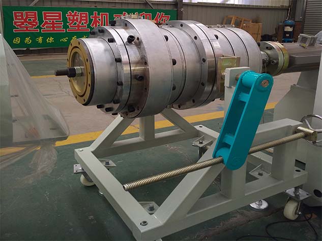 2.該擠出模具是我公司特有的高壓模具,采用模具鋼鍛打調(diào)質(zhì)后電鍍處理。模具芯部的特殊設計保證了原料的低溫塑化效果,以及芯部的特殊控溫系統(tǒng)保證了PE管材的外觀和質(zhì)量性能。我公司開發(fā)的多層共擠模具熔融壓力和流量的均勻性及調(diào)節(jié)方便性能更是受到了很多客戶的信賴。